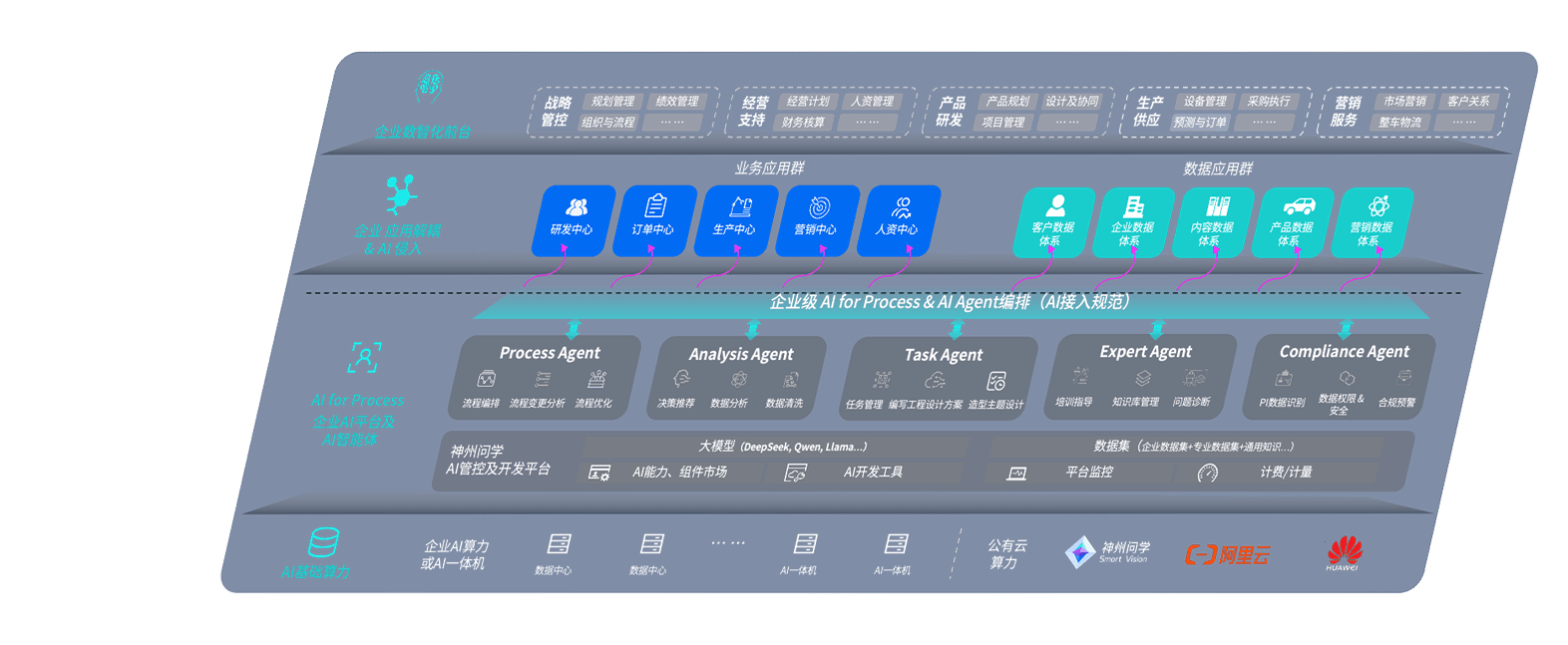 非凡国际问学智车解决方案是一套基于AI技术的汽车行业智能化系统,,覆盖从底层算力到顶层AI应用的全栈方案。。。方案由算力层、、、、模型层和应用层组成:算力层,,,,方案支持多种一体机配置,,,,具备云端灵活部署、、多云适配以及动态优化计算资源的能力;模型层,,非凡国际问学平台版提供了企业级AI应用一站式构建与管理平台,,,支持基于后训练强化技术的汽车企业专属模型的训练、、、评测和运营;应用层,,,非凡国际问学DeepSeek版提供包括超级员工、、、、智能招采、、、、智能营销、、、、智能客服、、AI for BI等一系列解决方案,,,,可助力汽车行业实现数字化转型,,让管理更智能、、、、响应更敏捷。。。
